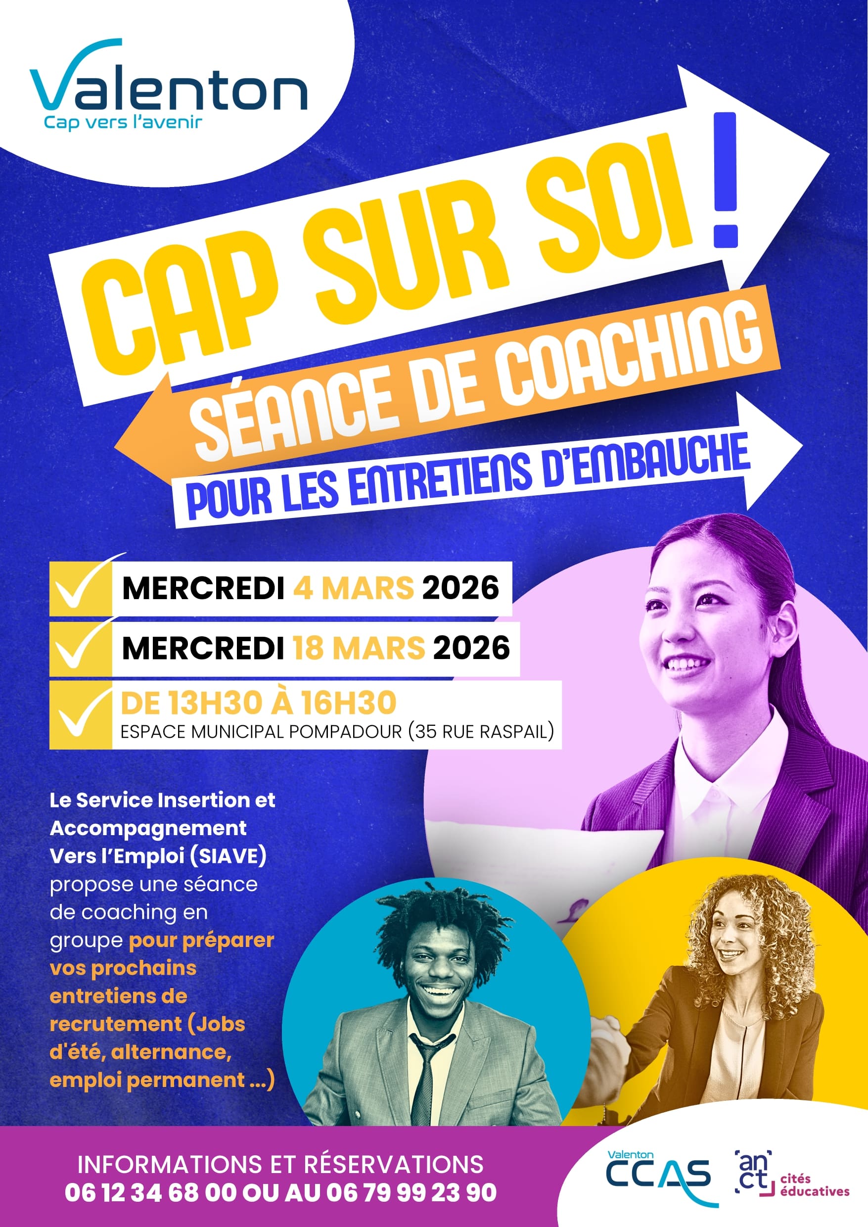 Vous préparez des entretiens d’embauche pour des jobs d’été, des alternances ou des emplois permanents ? Le Service Insertion et Accompagnement Vers l’Emploi (SIAVE) vous propose deux séances de coaching collective pour gagner en confiance et mettre toutes les chances de votre côté !